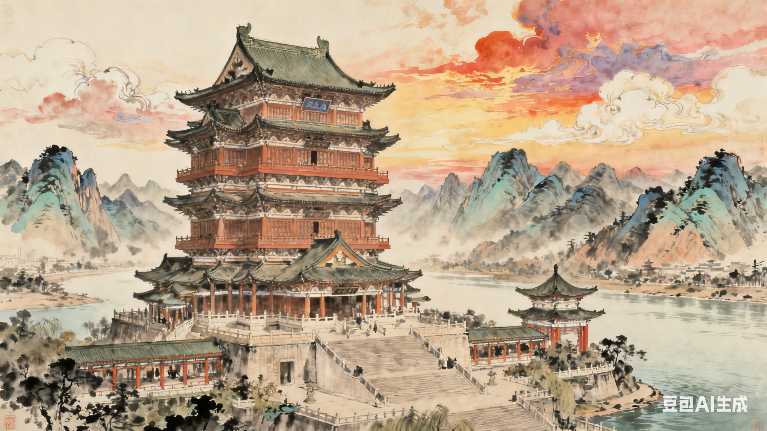 时维九月,序属三秋。潦水尽而寒潭清,烟光凝而暮山紫。俨骖騑于上路,访风景于崇阿;临帝子之长洲,得天人之旧馆。层峦耸翠,上出重霄;飞阁流丹,下临无地。鹤汀凫渚,穷岛屿之萦回;桂殿兰宫,即冈峦之体势。披绣闼,俯雕甍;山原旷其盈视,川泽纡其骇瞩。闾阎扑地,钟鸣鼎食之家;舸舰弥津,青雀黄龙之舳。云销雨霁,彩彻区明。落霞与孤鹜齐飞,秋水共长天一色。渔舟唱晚,响穷彭蠡之滨;雁阵惊寒,声断衡阳之浦。